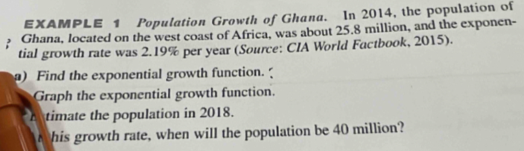 Solved: EXAMPLE 1 Population Growth of Ghana. In 2014, the population ...