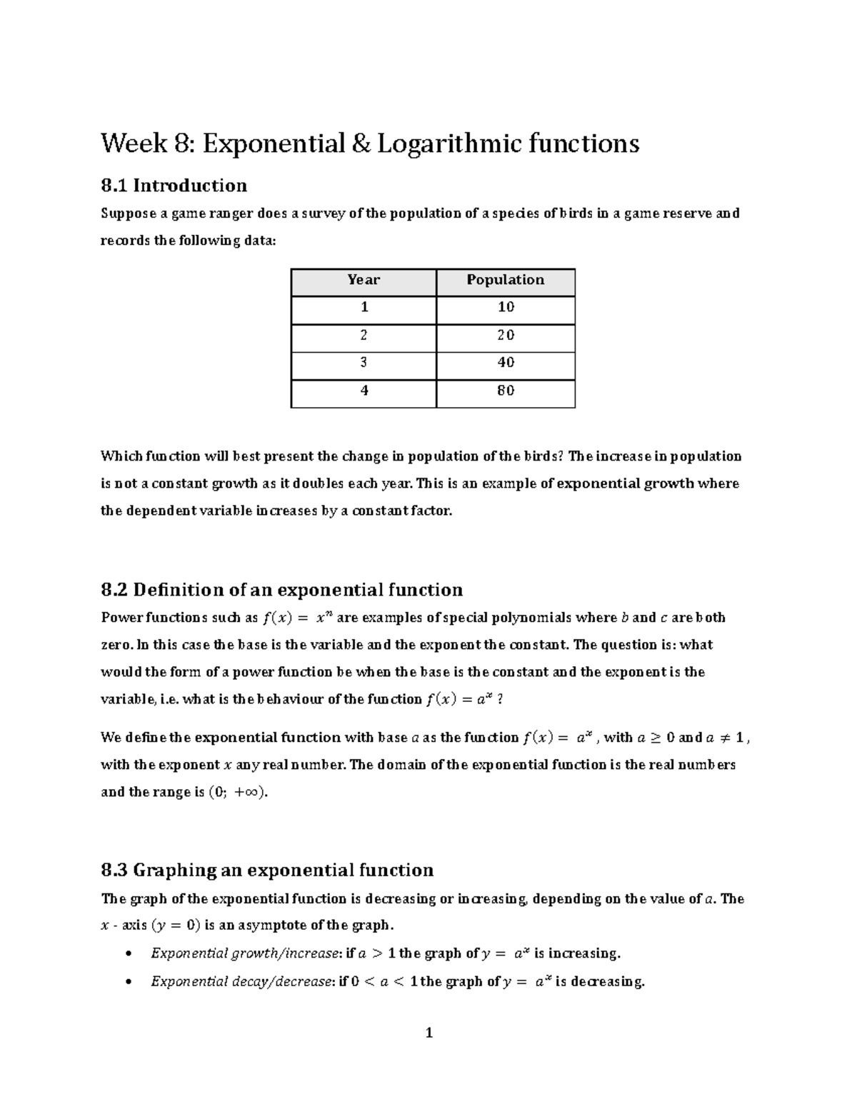 Week 8: Exponential & Logarithmic Functions Lecture Notes - Studocu