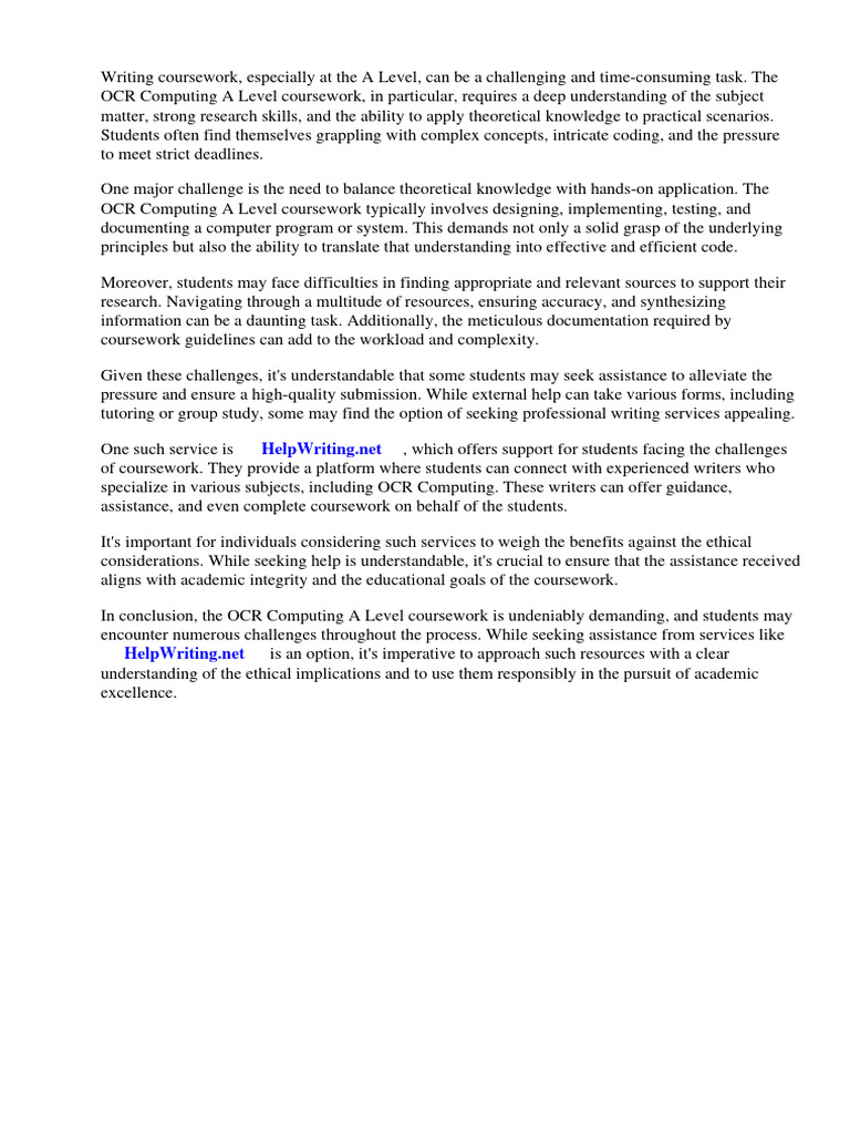 A Level Coursework Help | PDF | Gce Advanced Level (United Kingdom ...