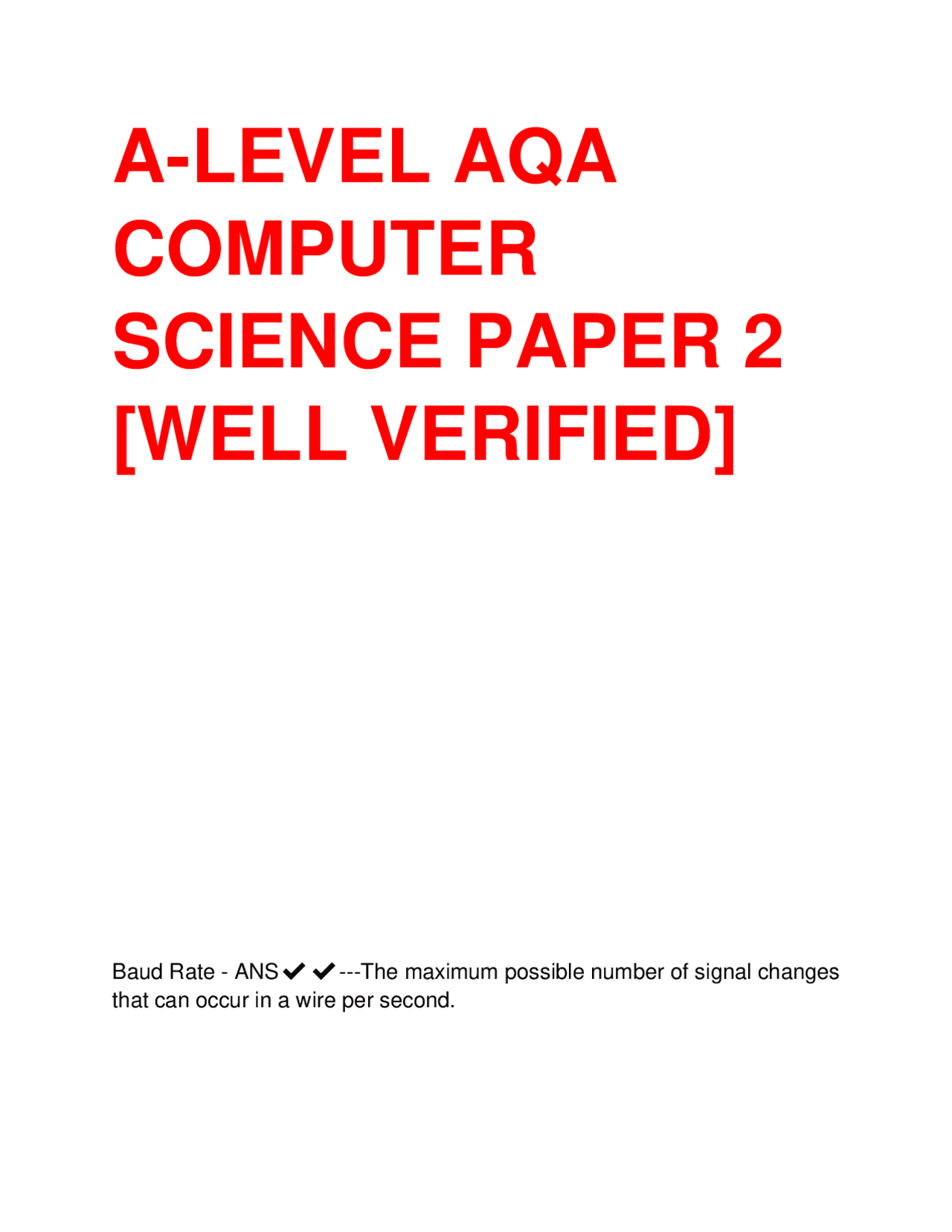 AQA A LEVEL Computer Science PAPER 2 - AQA A LEVEL - Stuvia US