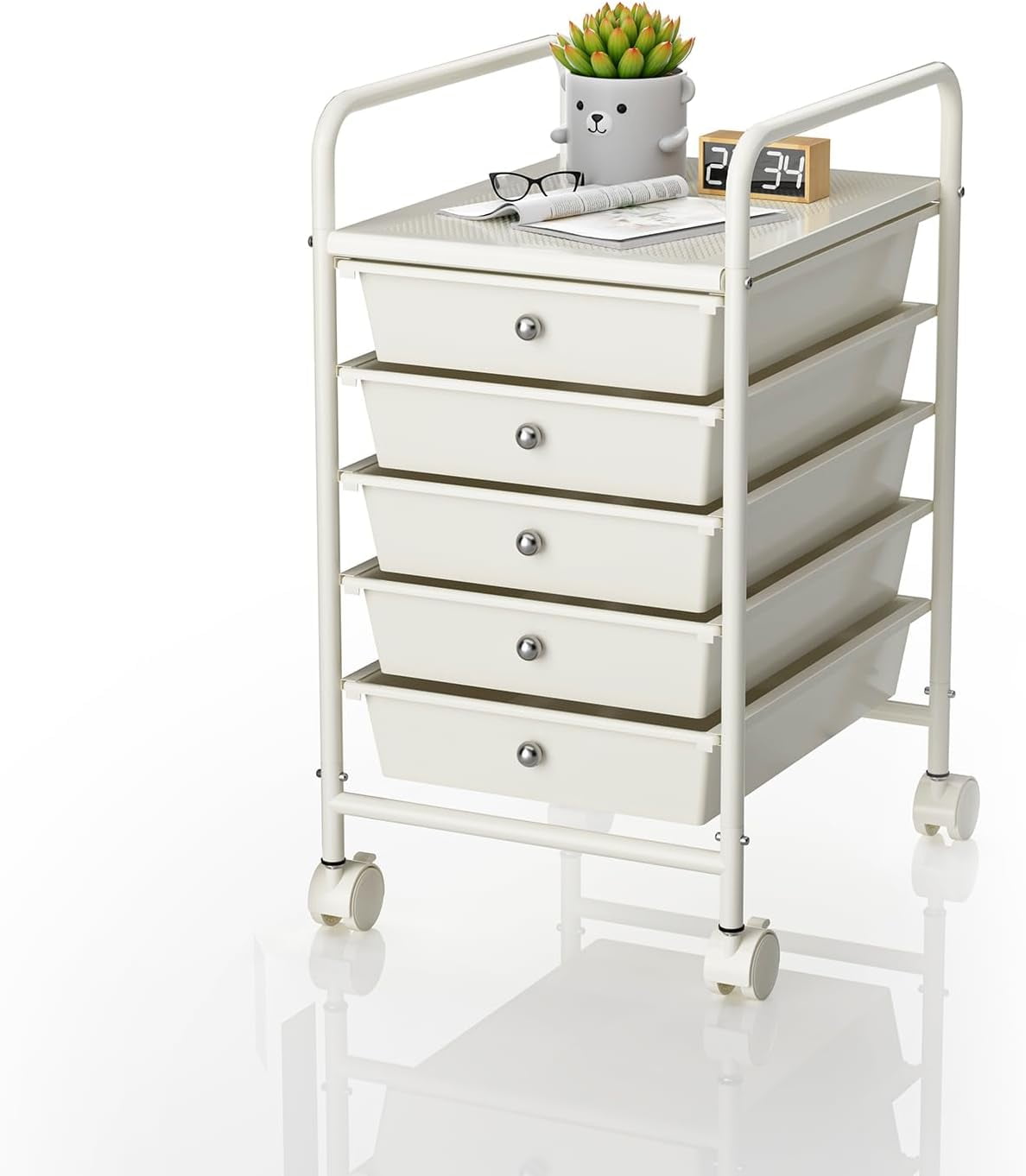 5-Tier Rolling Cart with 5 Drawers, Rolling Utility Cart with 2 ...