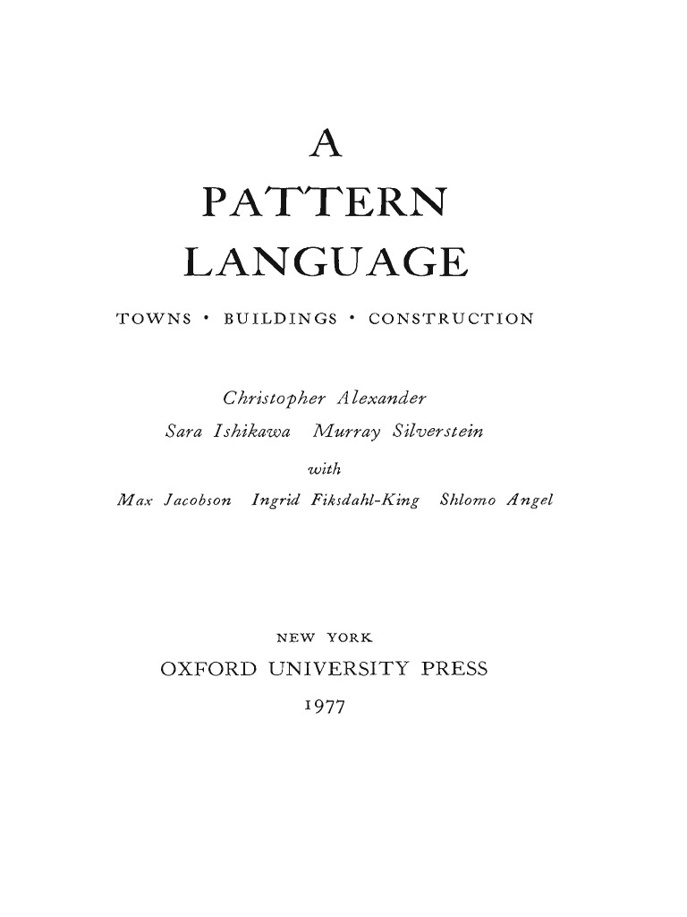 Alexander, Christopher (1977) A Pattern Language | PDF