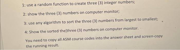 Solved 1: use a random function to create three ( 3 ) | Chegg.com