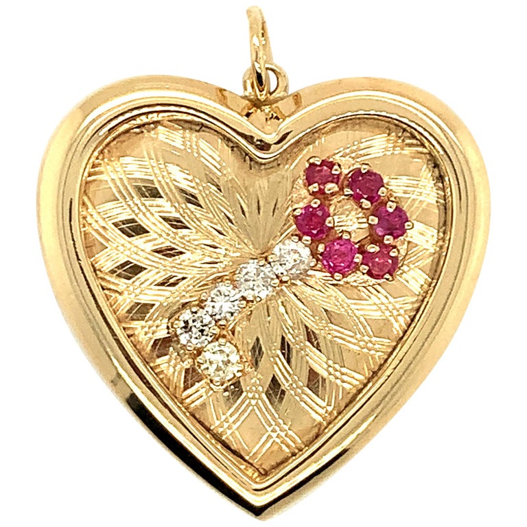 Retro Heart Diamond Ruby Key Charm For Sale at 1stDibs