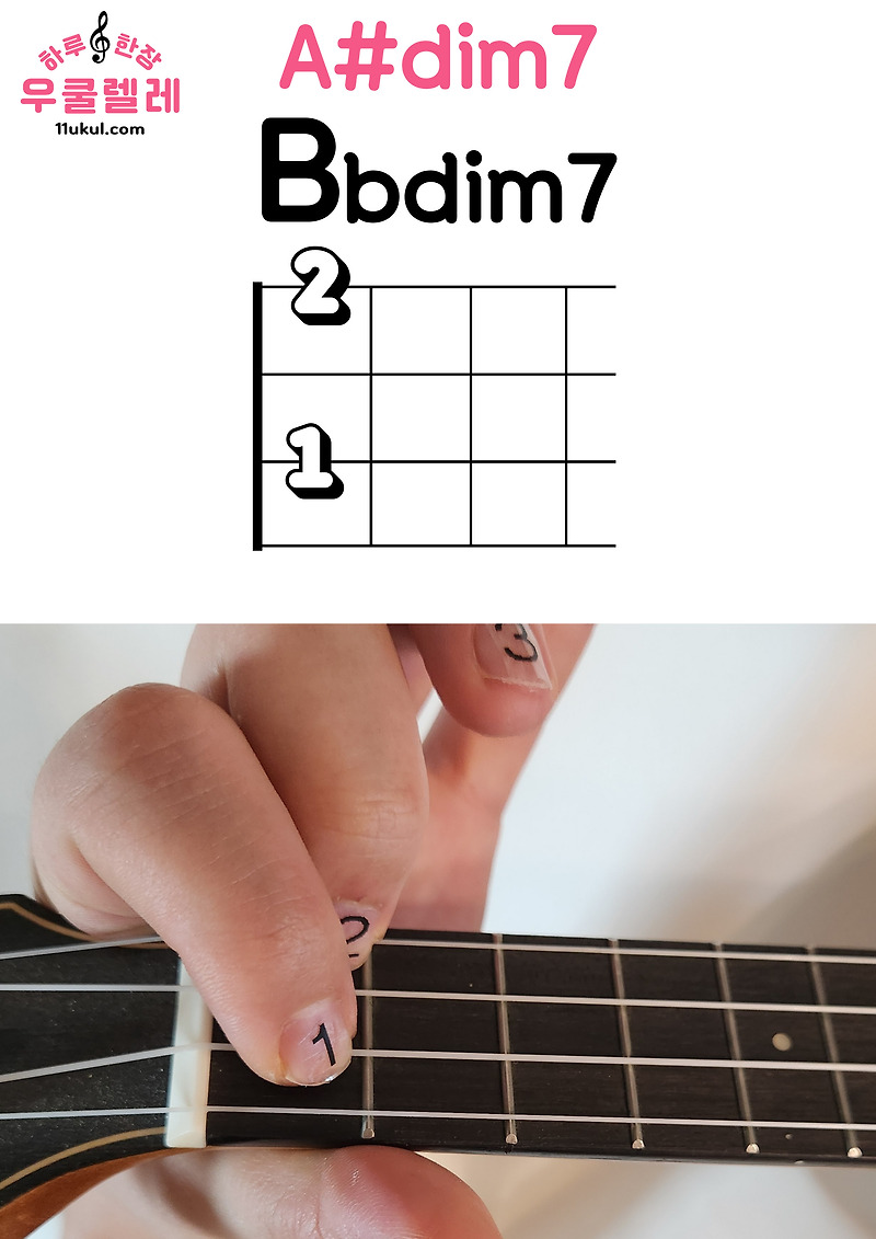 우쿨렐레 Bbdim7 A#dim7 코드 잡는 방법(운지법) Ukulele Bbdim7 A#dim7 chord - 하루한장우쿨렐레 ...
