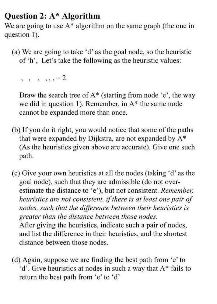 Question 2: A* Algorithm We are going to use A* | Chegg.com