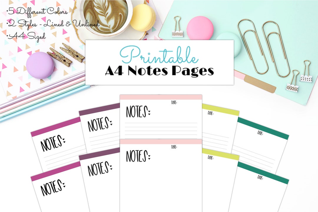 Printable Note Pages - A4 Notes - A4 Printables - Planner Printables ...