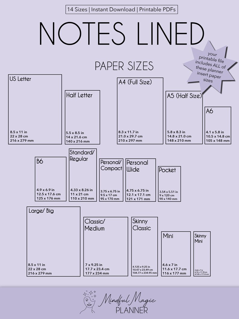 Notes Page- Planner Insert in 14 Sizes - US Letter, Half Letter, A4, A5 ...