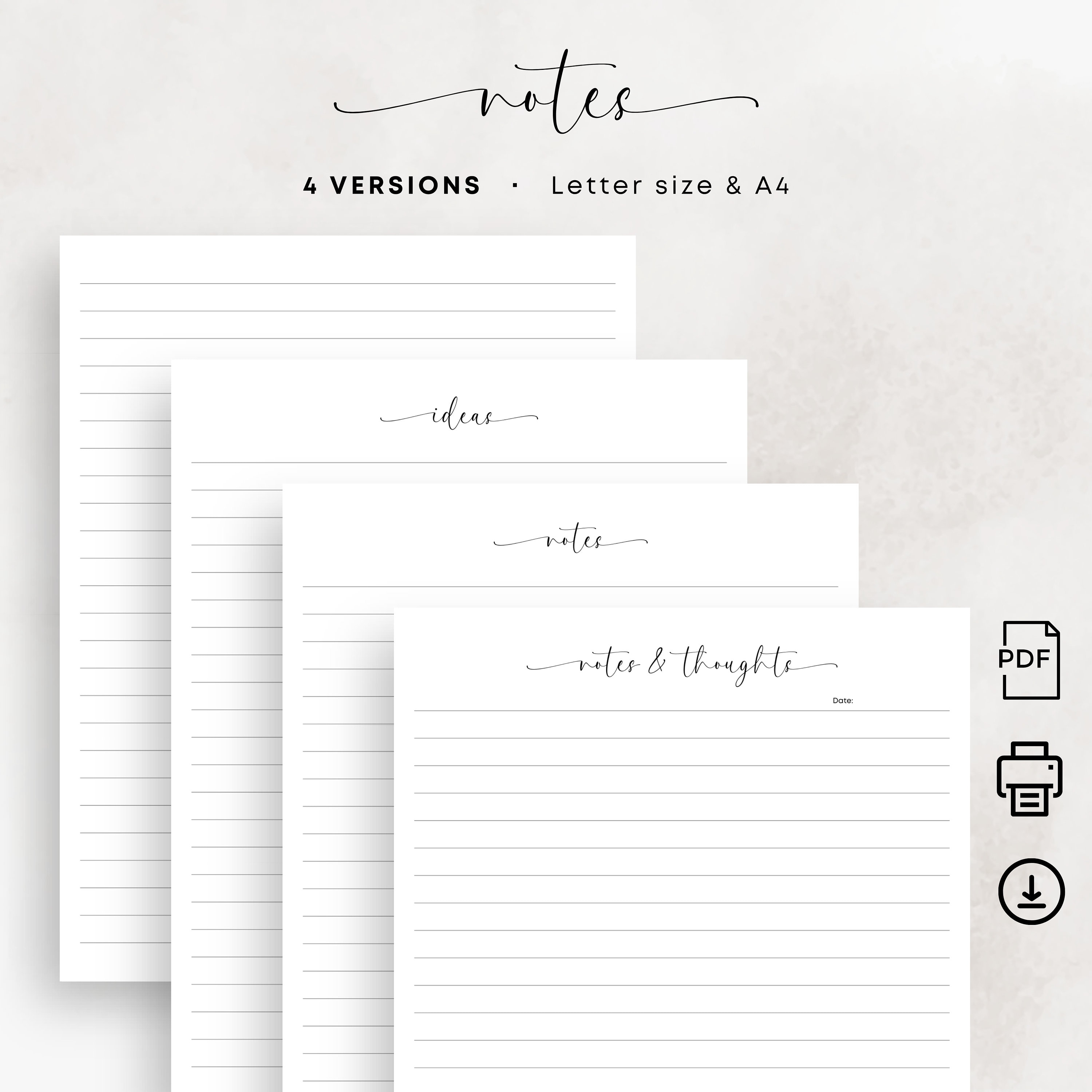 Printable Notes Pages, 4 Layouts, A4, A5 Letter Sizes PDF Download - Etsy