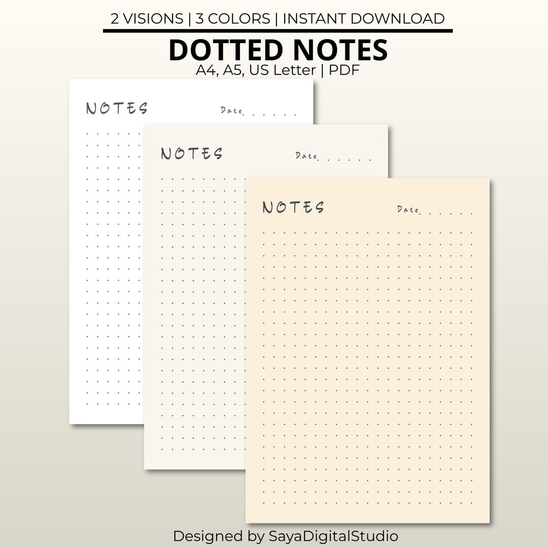Printable Dotted Notes Paper • A4 A5 Letter Sizes (PDF & PNG) - Etsy