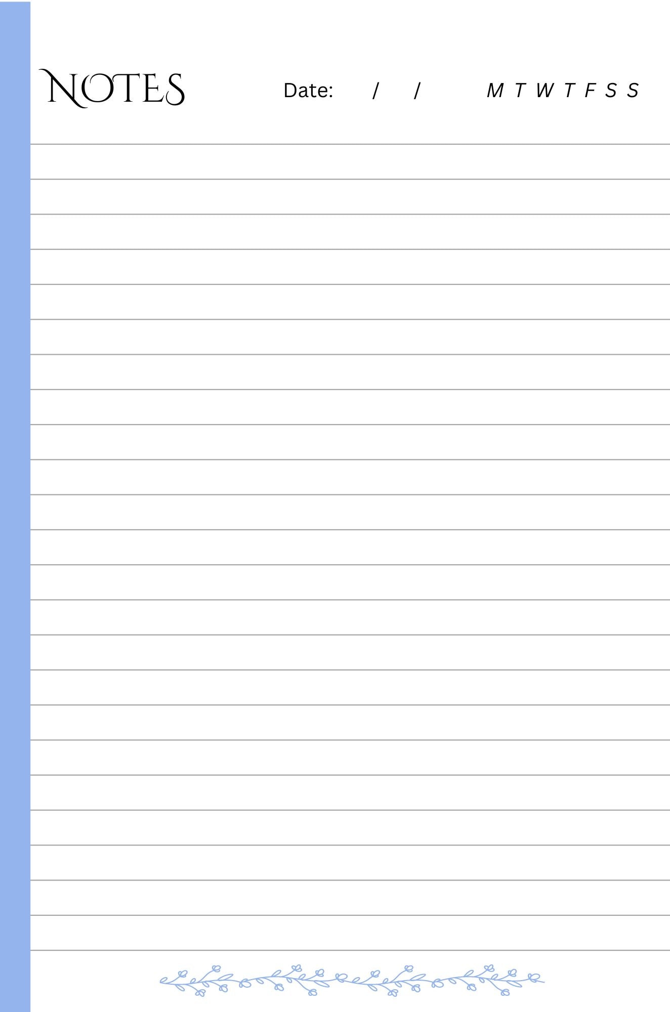 Printable Notes Pad/ Note Template/ Study Note/ Notebook Paper/ Lined ...