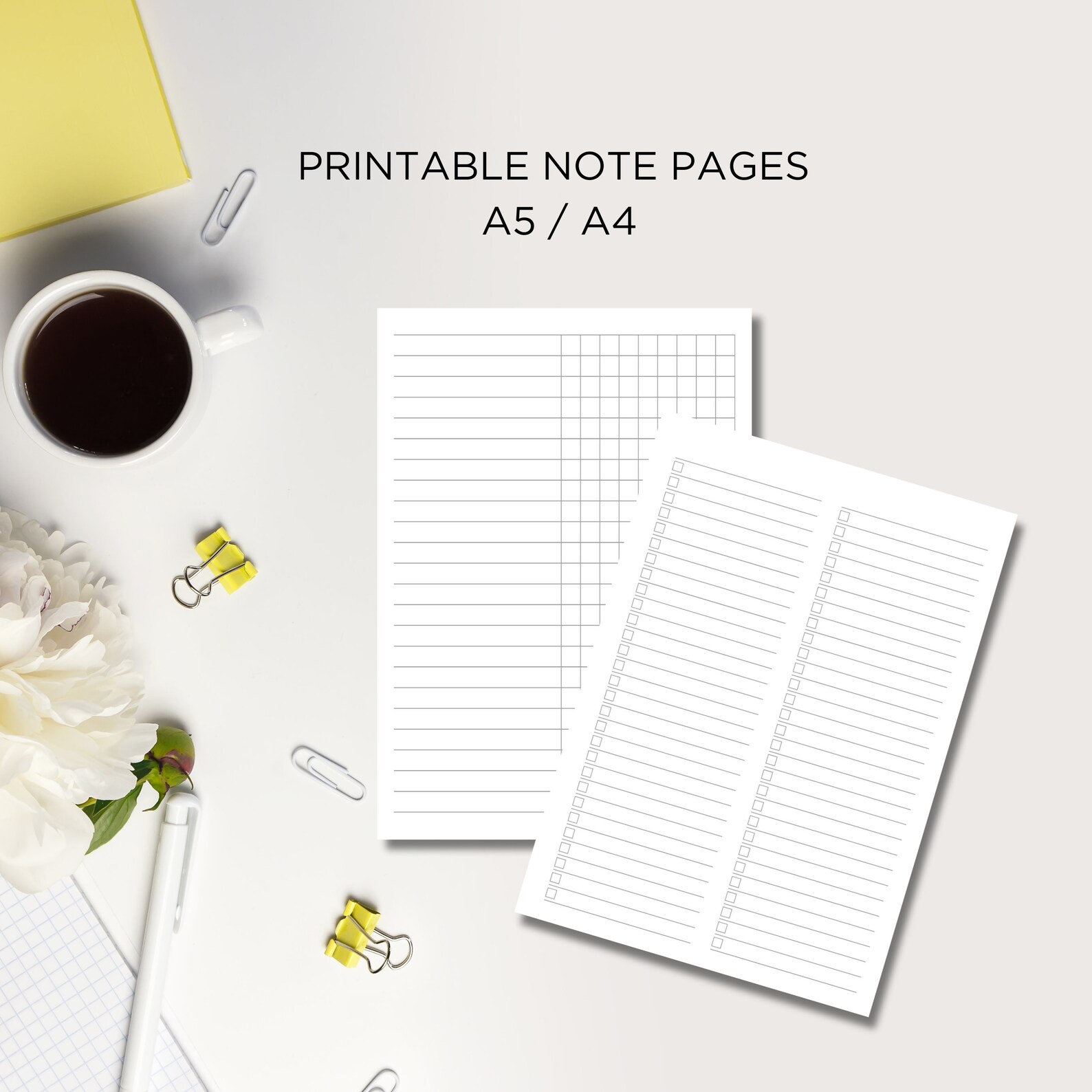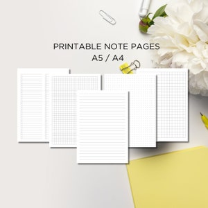 PDF Printable Note Pages, A4/A5, Lined Notes Template, Grid Notes ...