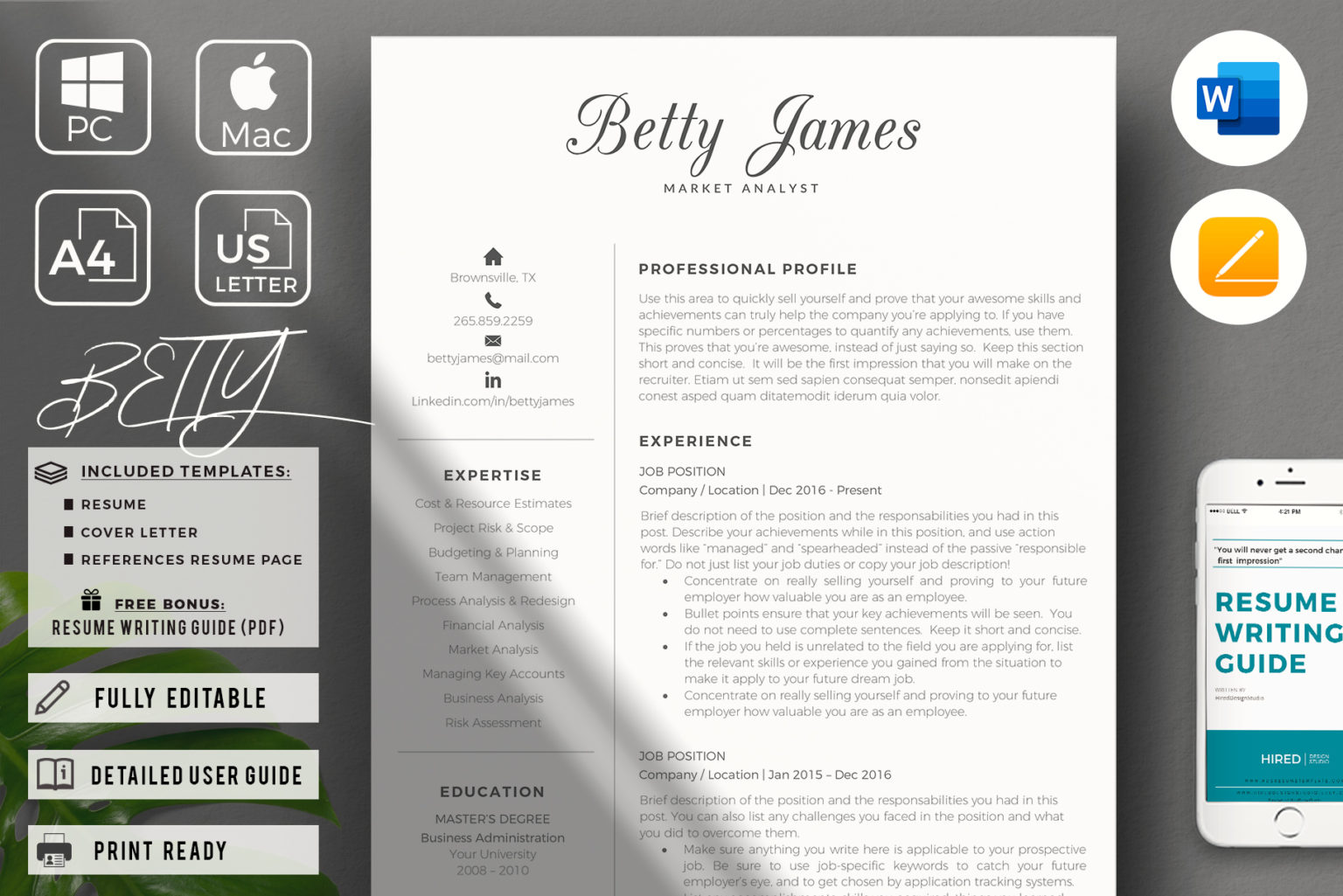 Resume Template, Cover Letter, References, A4 & US Letter, Compatible ...