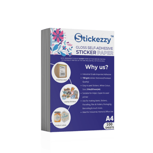 A4 White Ultra Glossy Self-Adhesive Sticker - 100nos - Printing done right!