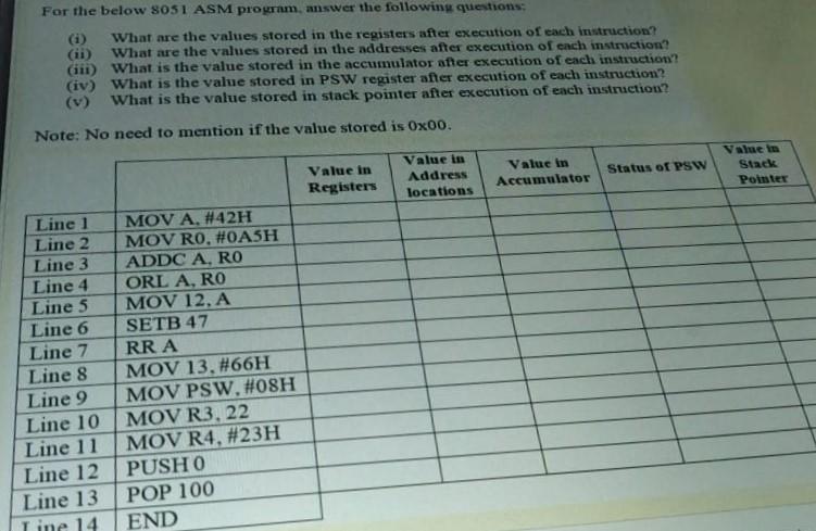 Solved For the following Wimp51/8051 ASM code sequence, fill | Chegg.com