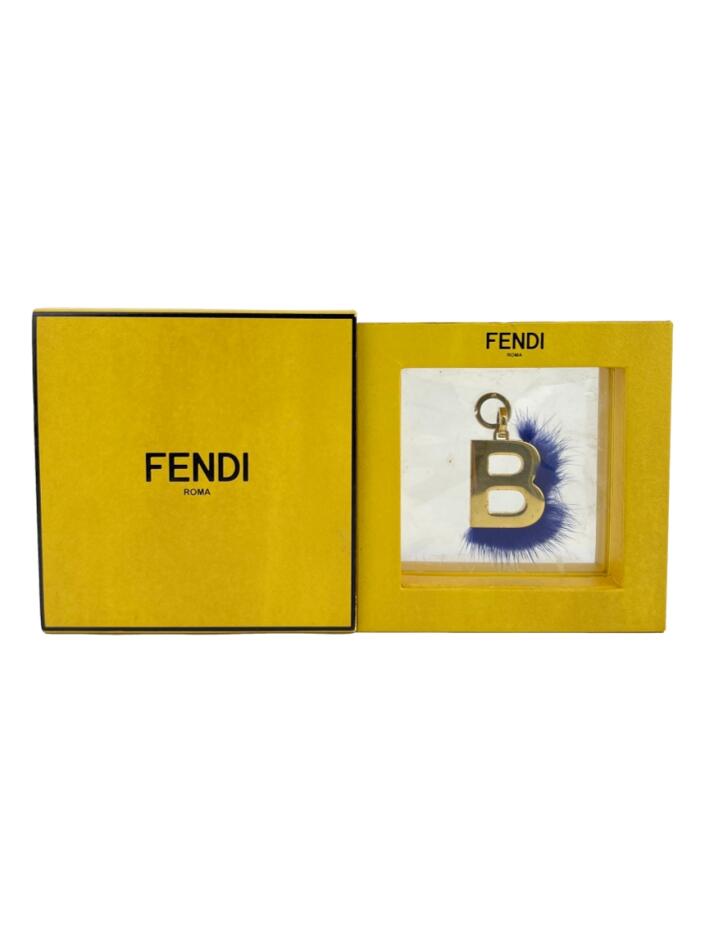 1円 FENDI フェンディ ABCLICK S ファー ペンダントトップ イニシャルチャーム レディース ゴールド系×ブルー系 FH1895 ...