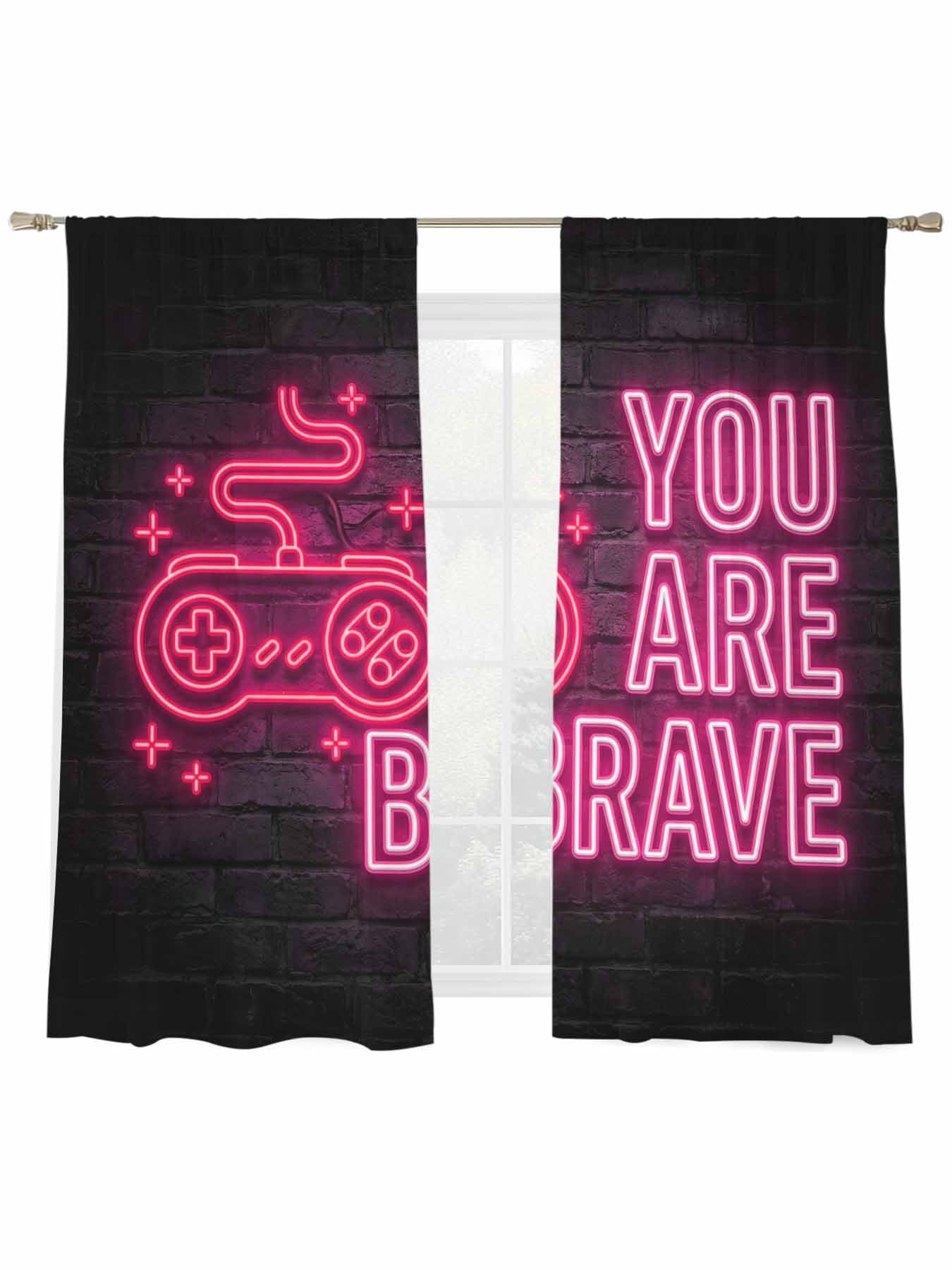 Art Gaming Icons Window Sheer Curtain Multi Panel Neon Letter Pink You ...