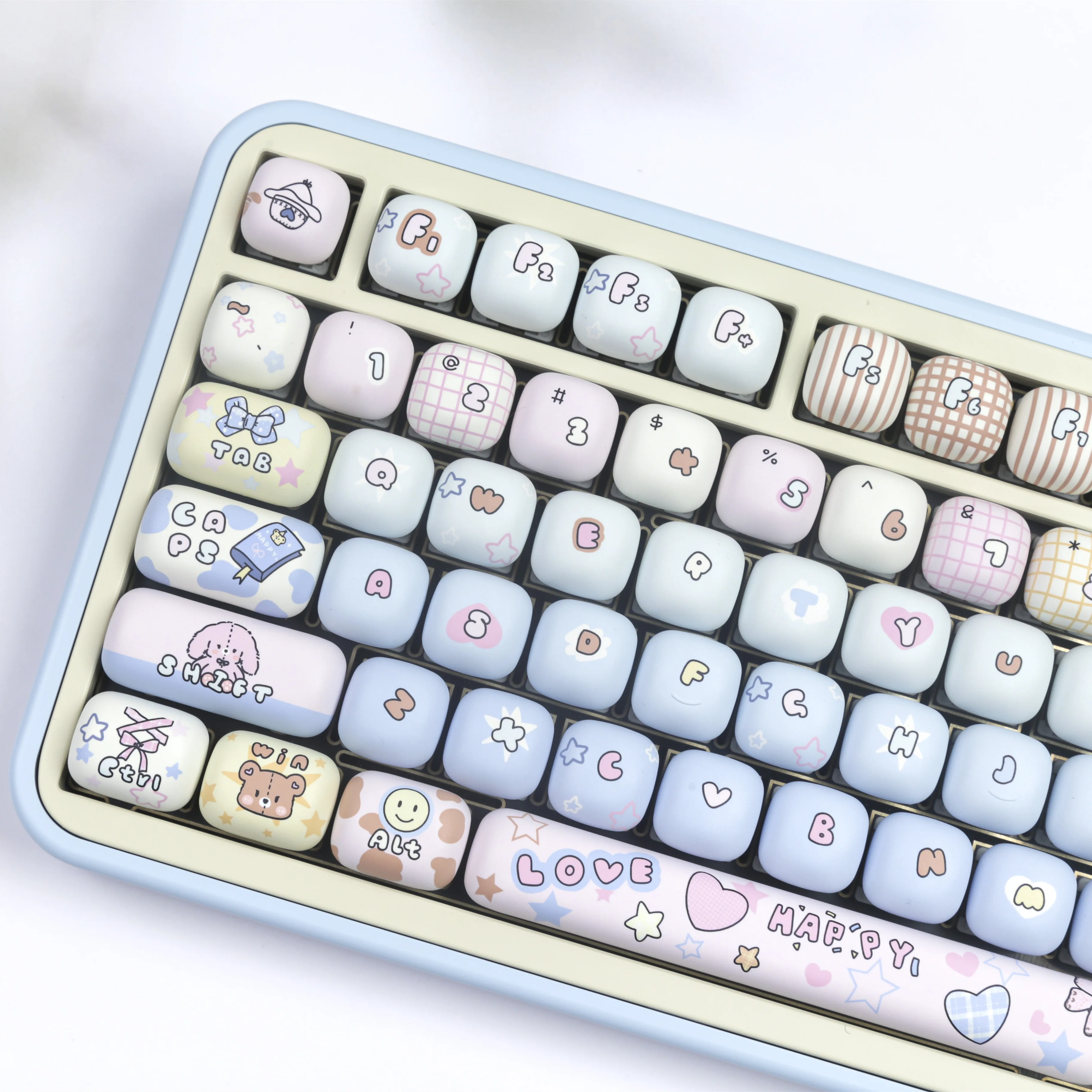 PBT Cute Keycaps, Blue MOG Profile Keycap, 139 Keys Rounded Custom ...