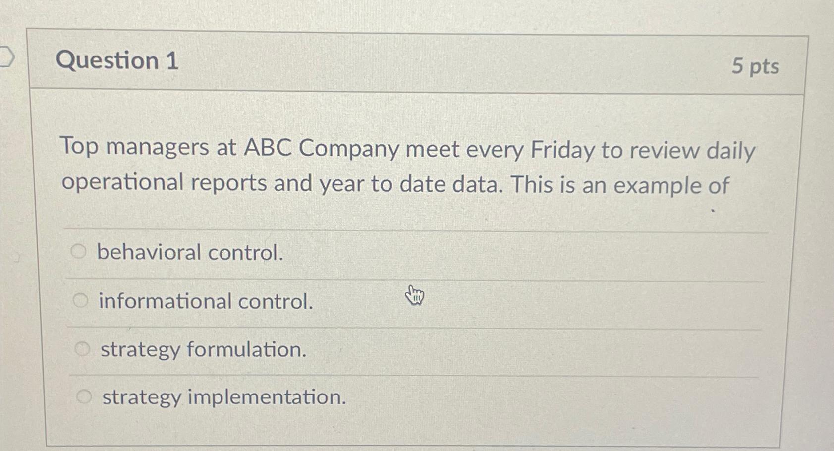 Solved Question 15 ptsTop managers at ABC Company meet | Chegg.com
