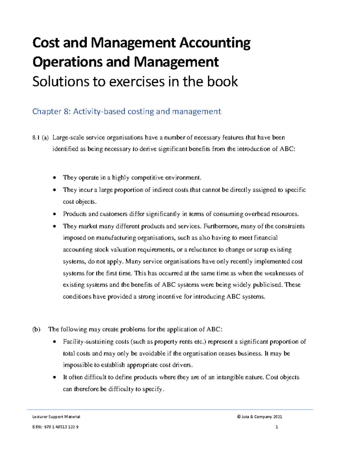 CMA Ops Chapter 08: ABC in Service Organizations and Cost Management ...