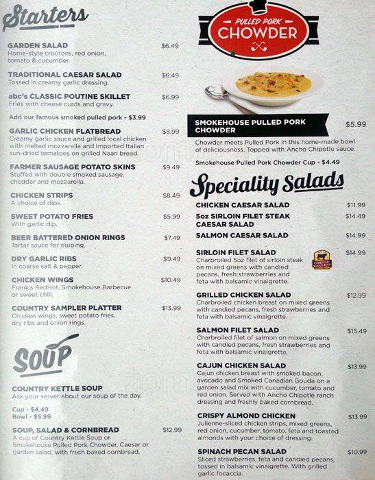 ABC Country Restaurant menu in Red Deer, Alberta, Canada