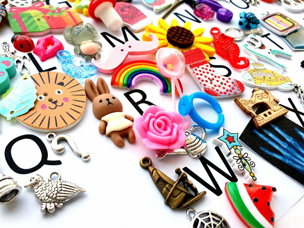 Alphabet objects for Montessori ABC Box, 1-5cm, 1/3/5 objects per letter