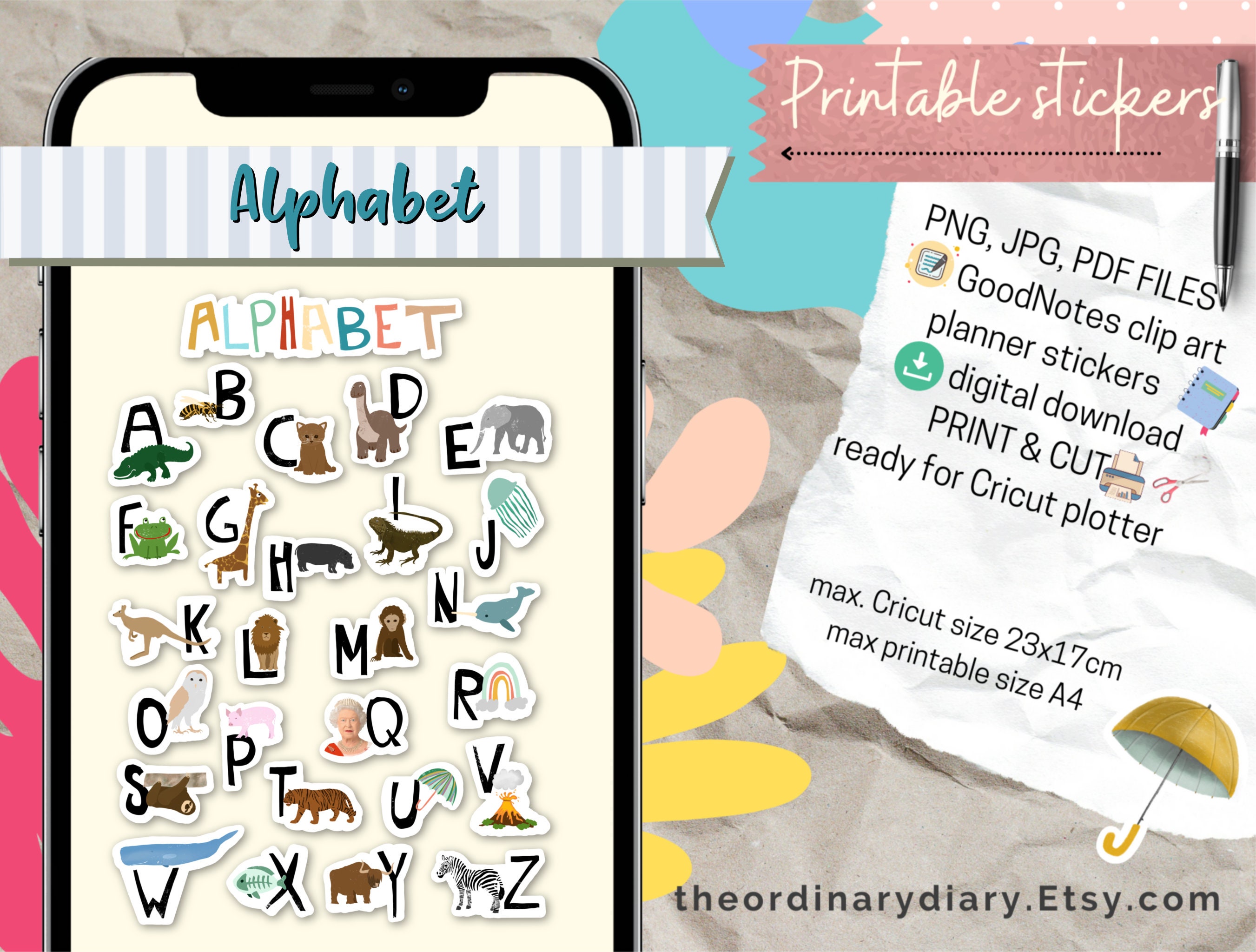 Alphabet PRINTABLE Stickers, Printable Bundle, Planners Stickers ...