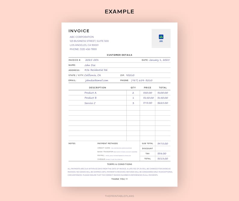 Invoice Template, Printable Invoice, Business Form, Editable Invoice ...