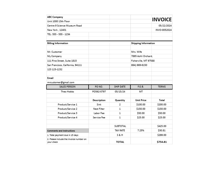Sample Invoice Template Free Download word, excel, google docs and sheets