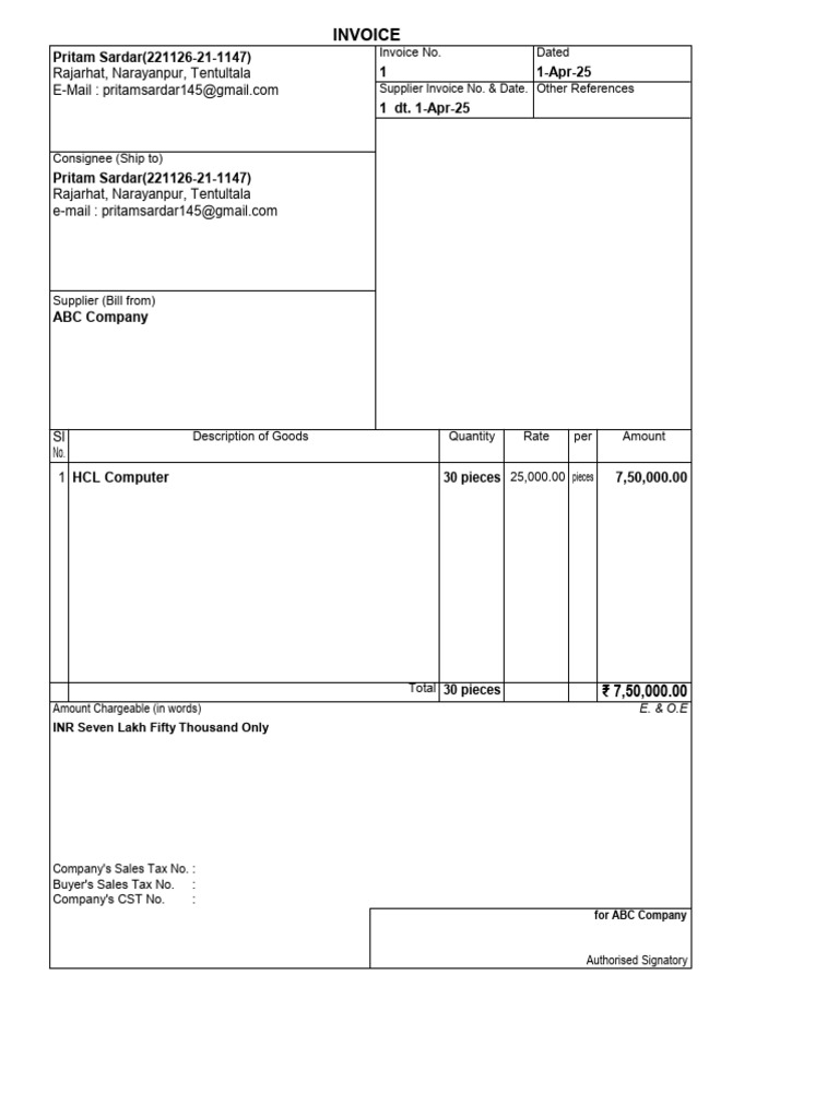 Invoice of ABC Comapny (HCL Computer) | PDF