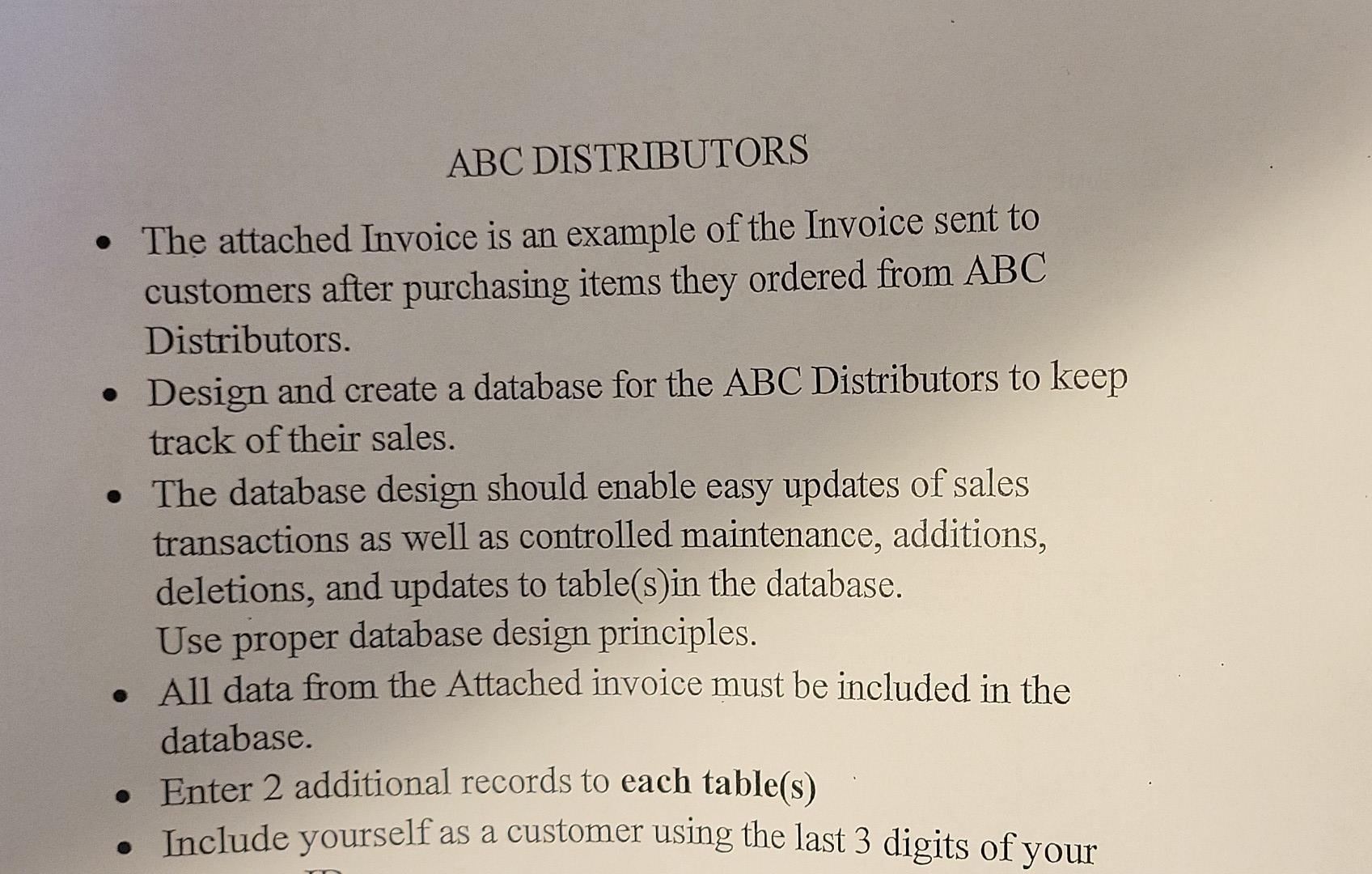 Solved INVOICE ABC Distributors 543 Main Street Kyle, SC | Chegg.com