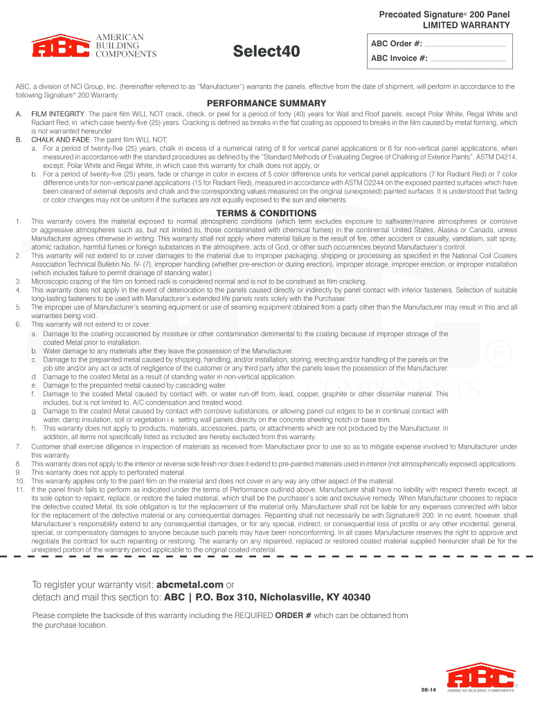 Fillable Online Select40 ABC Order ABC Invoice - ABC Metal Roofing Fax ...