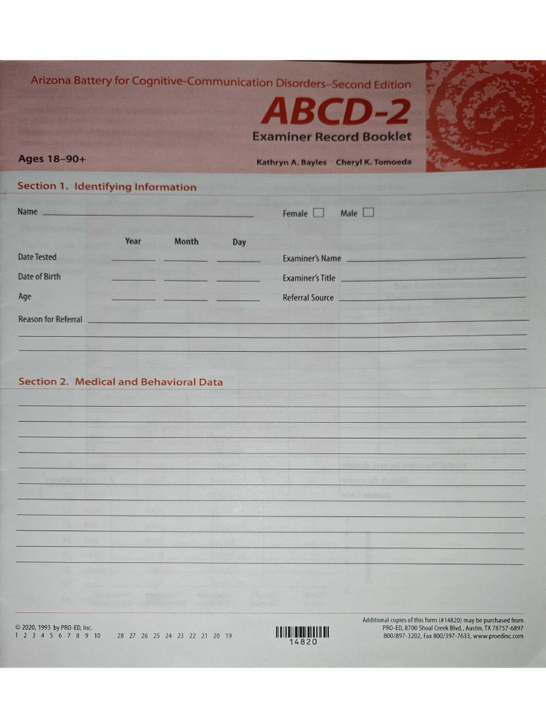 Arizona Battery For Cognitive Communication Disorders (Abcd-2) Examiner ...