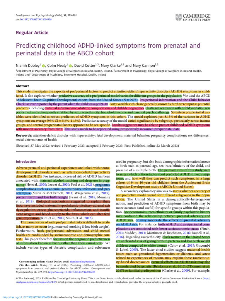 Predicting Childhood Adhd Linked Symptoms From Prenatal and Perinatal ...