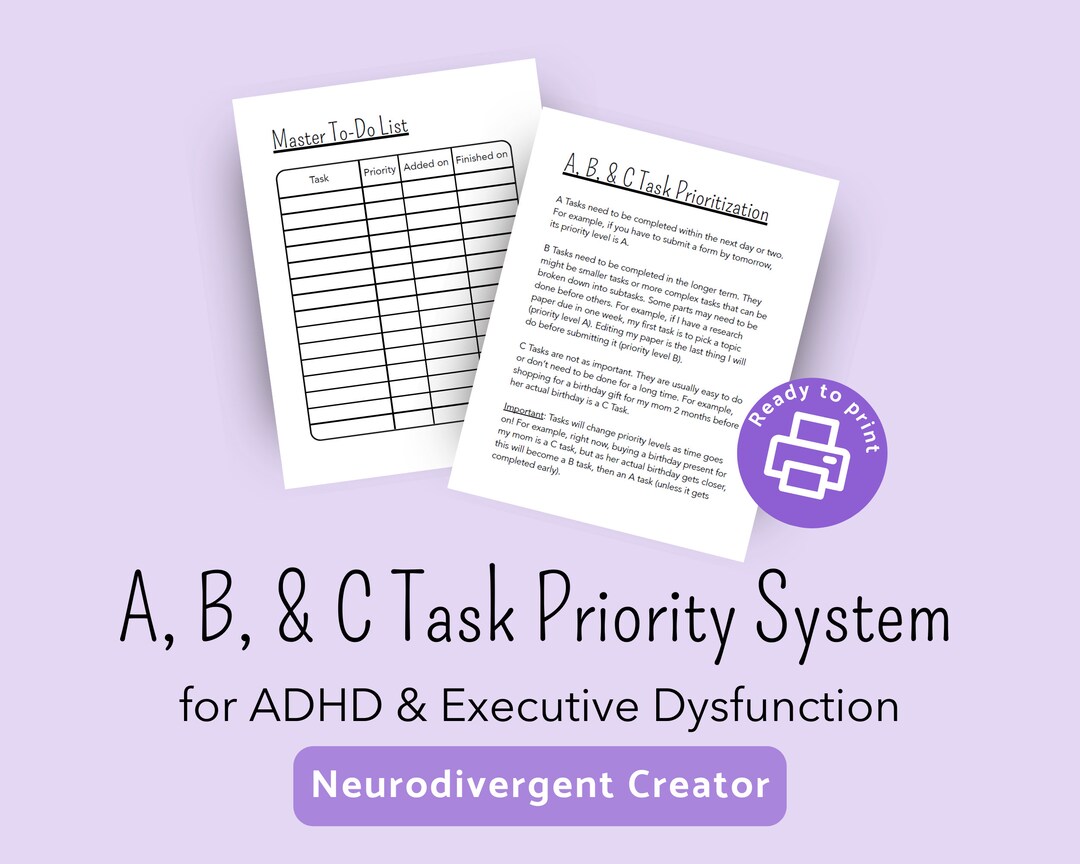 A, B, & C Task Priority System for ADHD and Executive Dysfunction ...