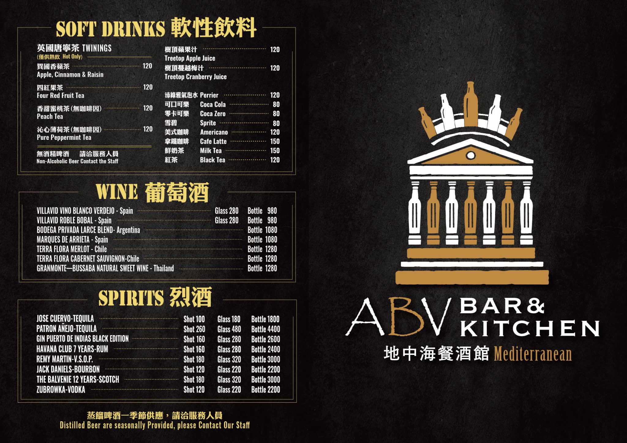 ABV地中海餐酒館 完整菜單 - ABV-啤酒餐廳領導品牌