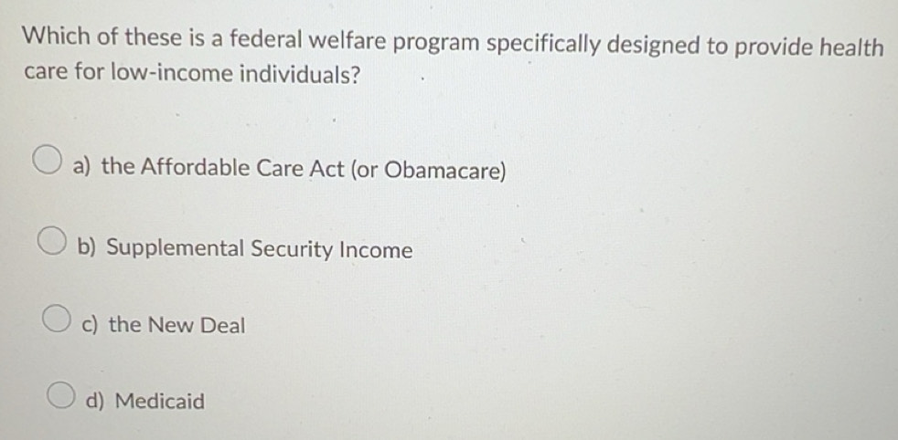Solved: Which of these is a federal welfare program specifically ...