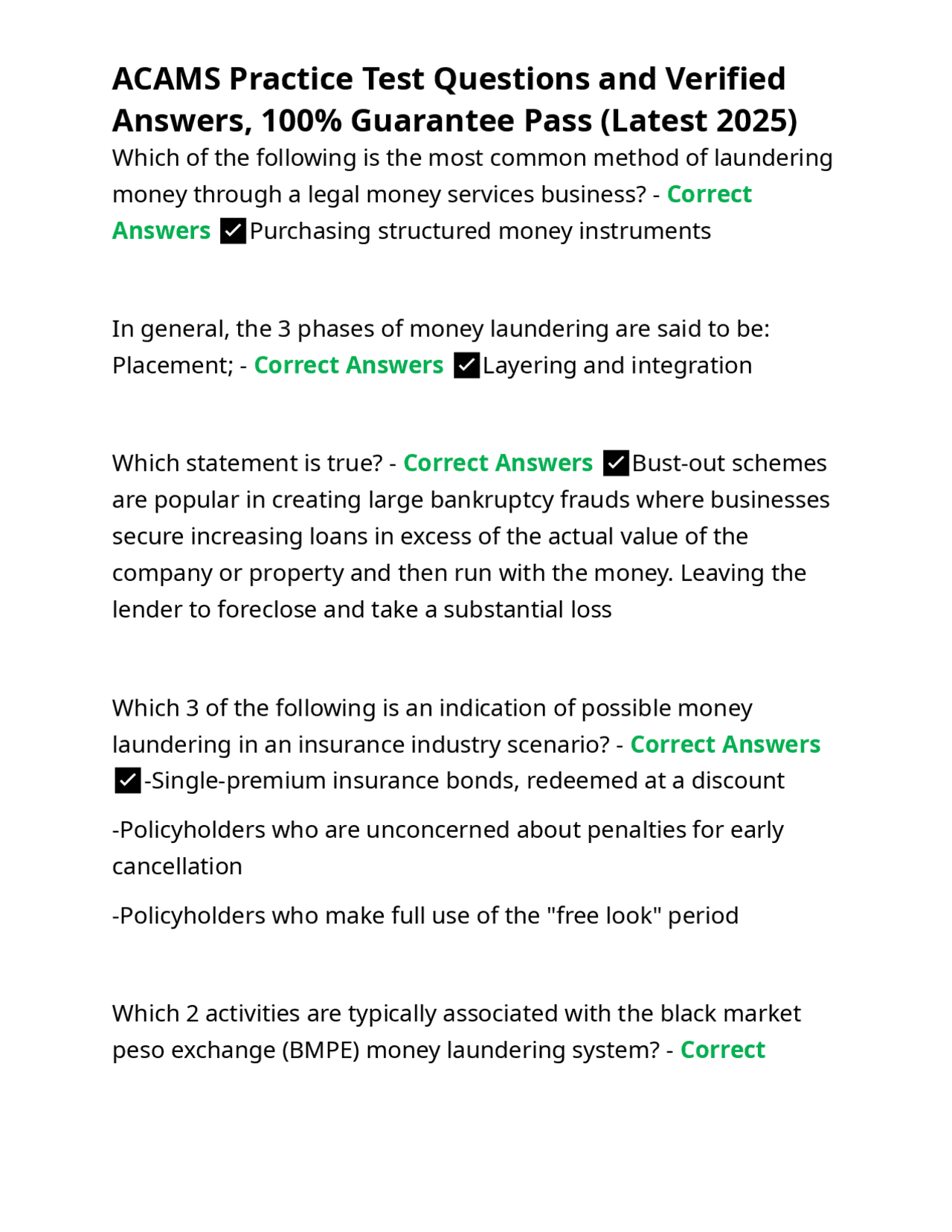 ACAMS Association of Certified Anti-Money Laundering Specialists Exam ...