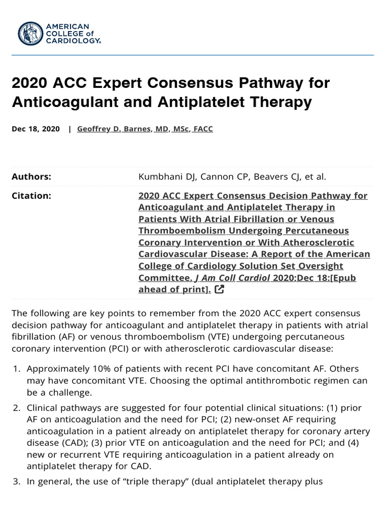 2020 ACC Expert Consensus Pathway For Anticoagulant and Antiplatelet ...