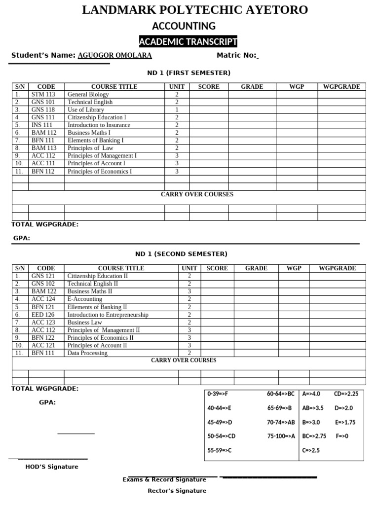 Official Transcript of Academic Record | PDF