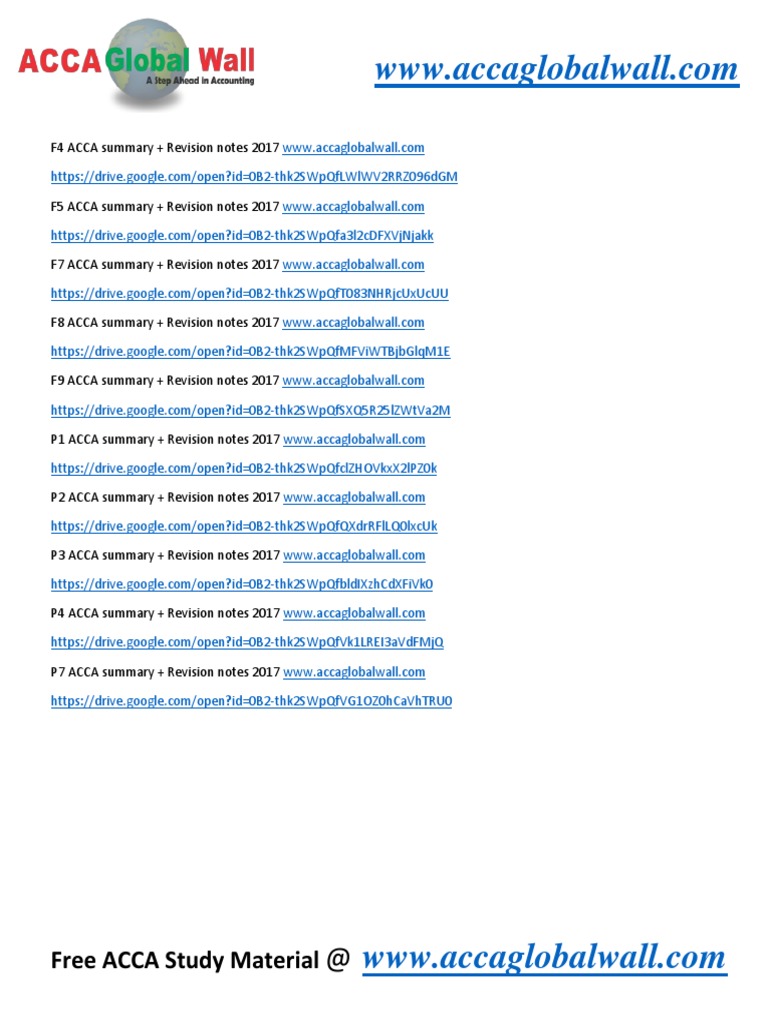 All Acca Study Material Links f1 To p7 Books Kits Summary Notes LSBF ...
