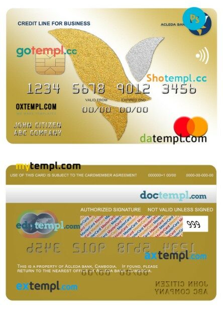 sample Cambodia Acleda bank mastercard credit card template in PSD ...