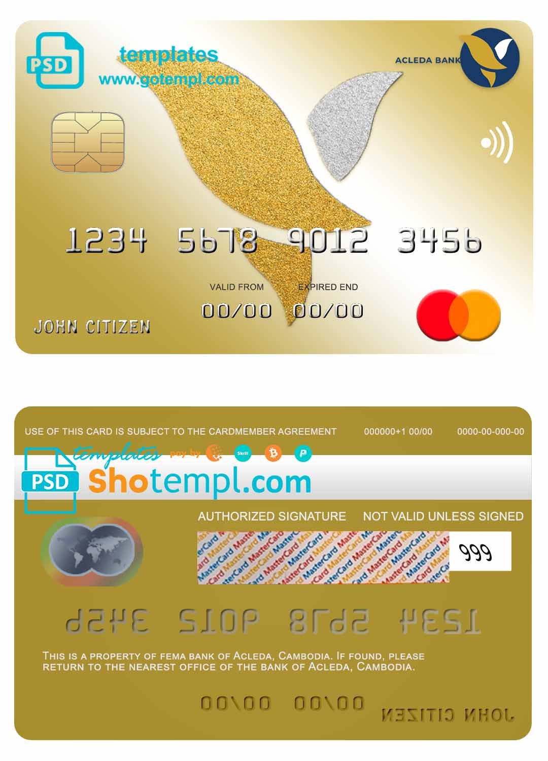 Cambodia Acleda bank mastercard template in PSD format, fully editable