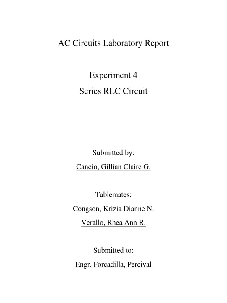 AC Circuits Laboratory Report: Submitted By: Cancio, Gillian Claire G ...