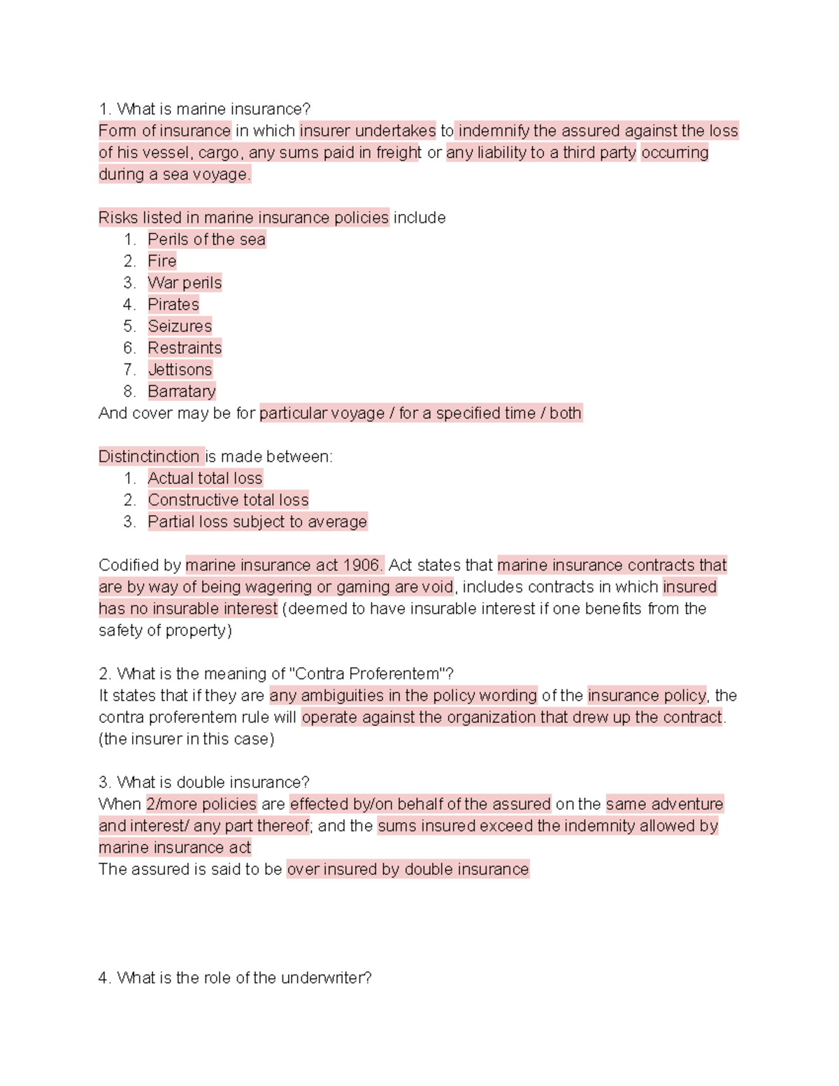 MI Les 1 - Lecture Notes on Marine Insurance Concepts - Studocu