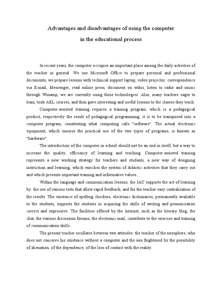 The advantages of the computer technology in the education. | Download ...