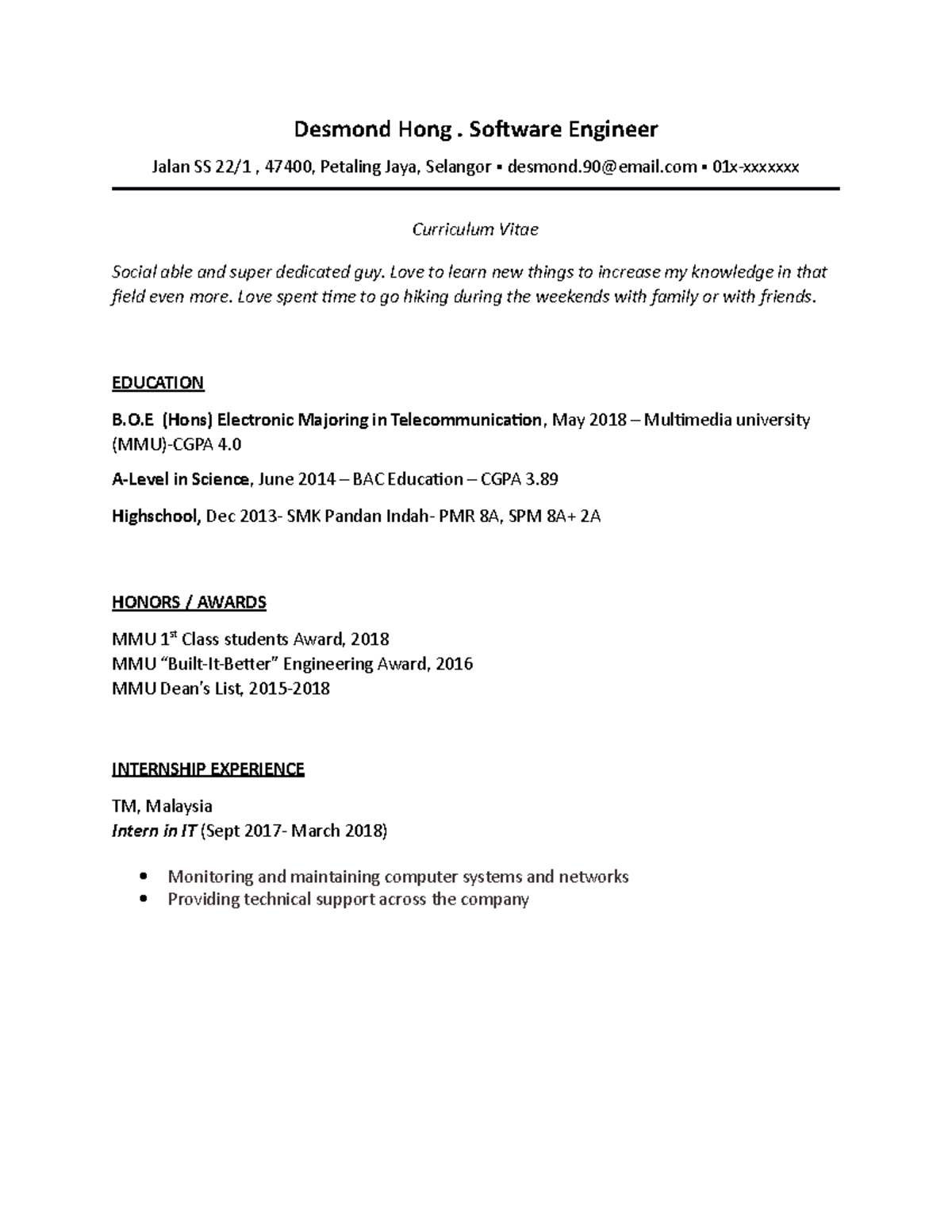CV 2 - Example of cv. You can use it for free - Desmond Hong. Software ...