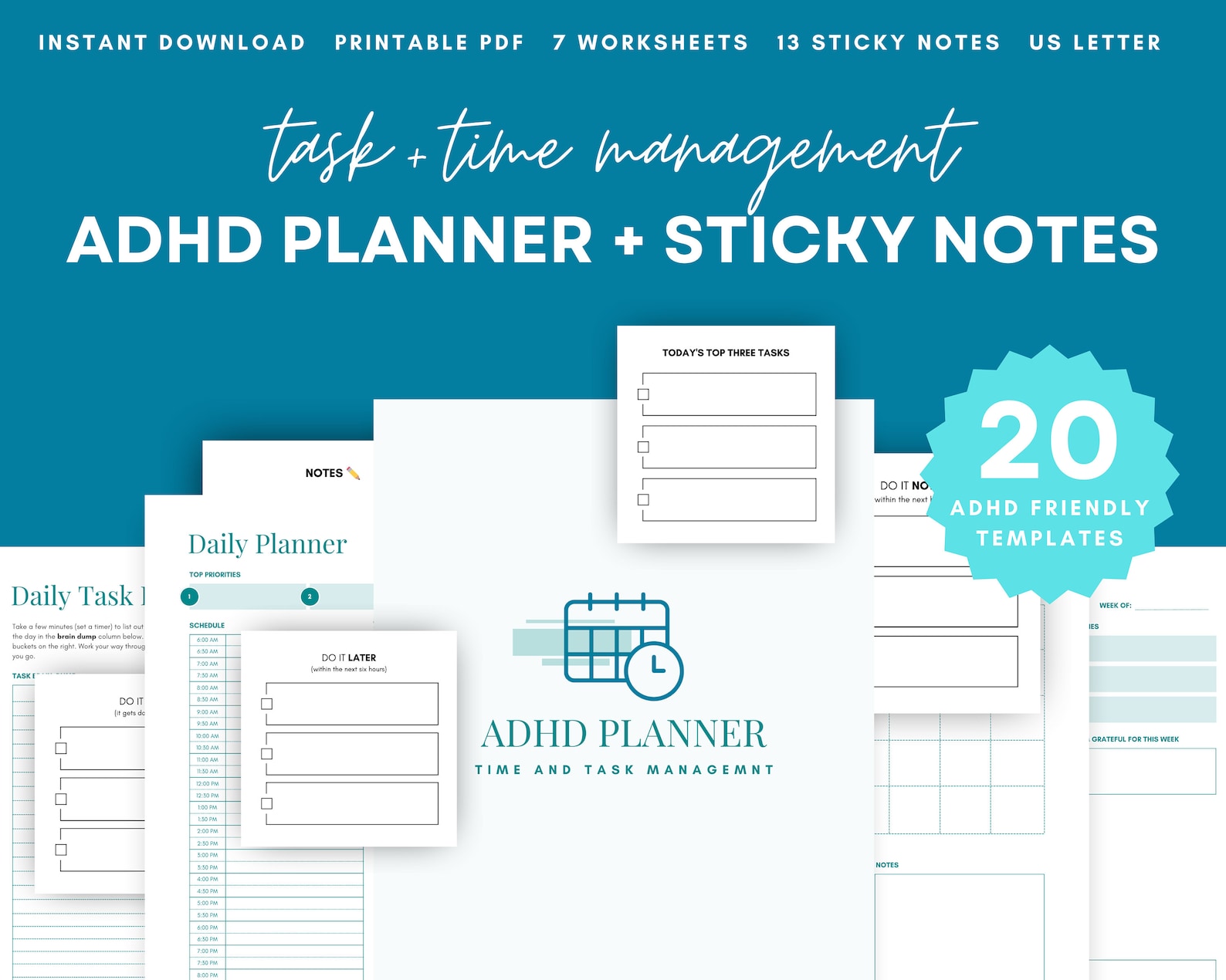ADHD Planner, Sticky Note Printable, Daily Planner, Weekly Planner ...