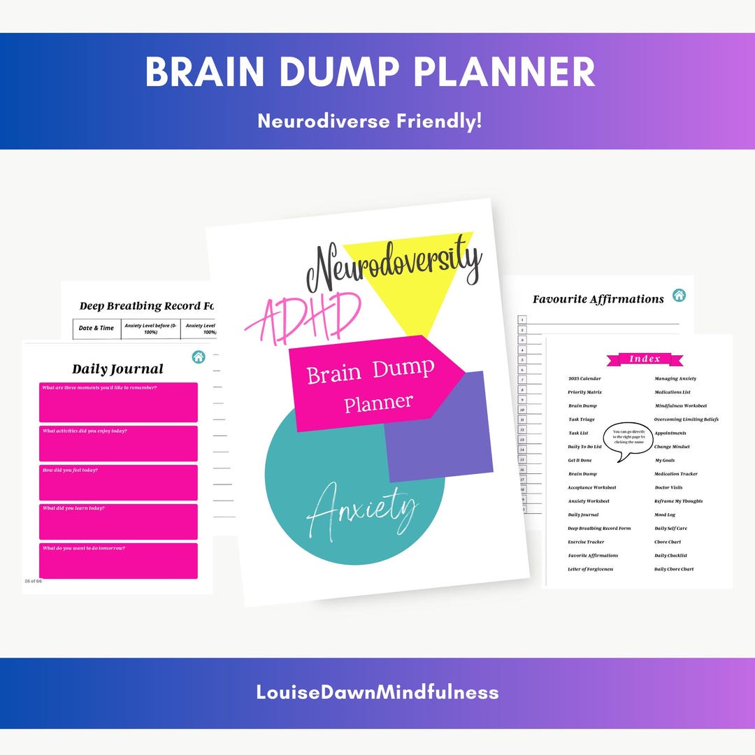 ADHD Self-care Digital Planner Printable Note-taking Anxiety Management ...