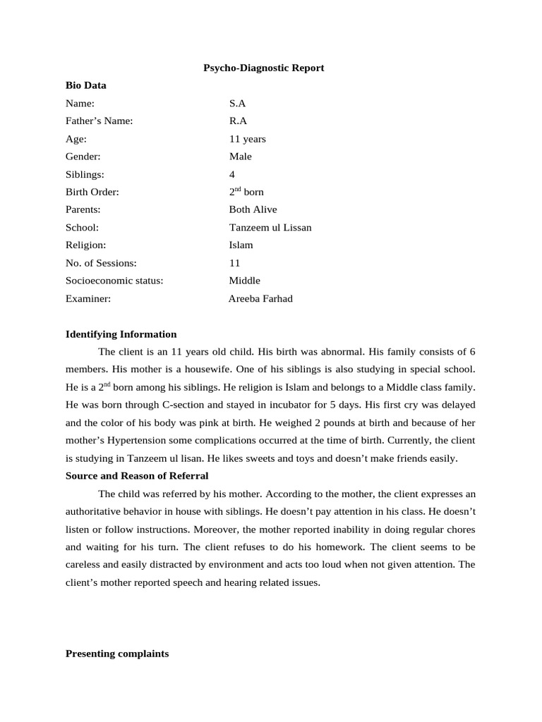 Example-ADHD-PSYCHOPEDAGOGICAL EVALUATION REPORT-ambezar Project | PDF ...